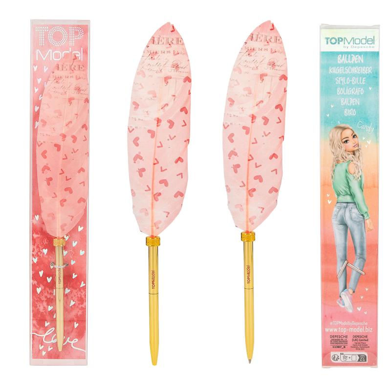 TOPModel fjær kulepenn med en stor spiss er tilgjengelig i tre forskjellige design med gyldne detaljer. Pakket i en gjennomsiktig boks. Blekkpatronen kan byttes ut.