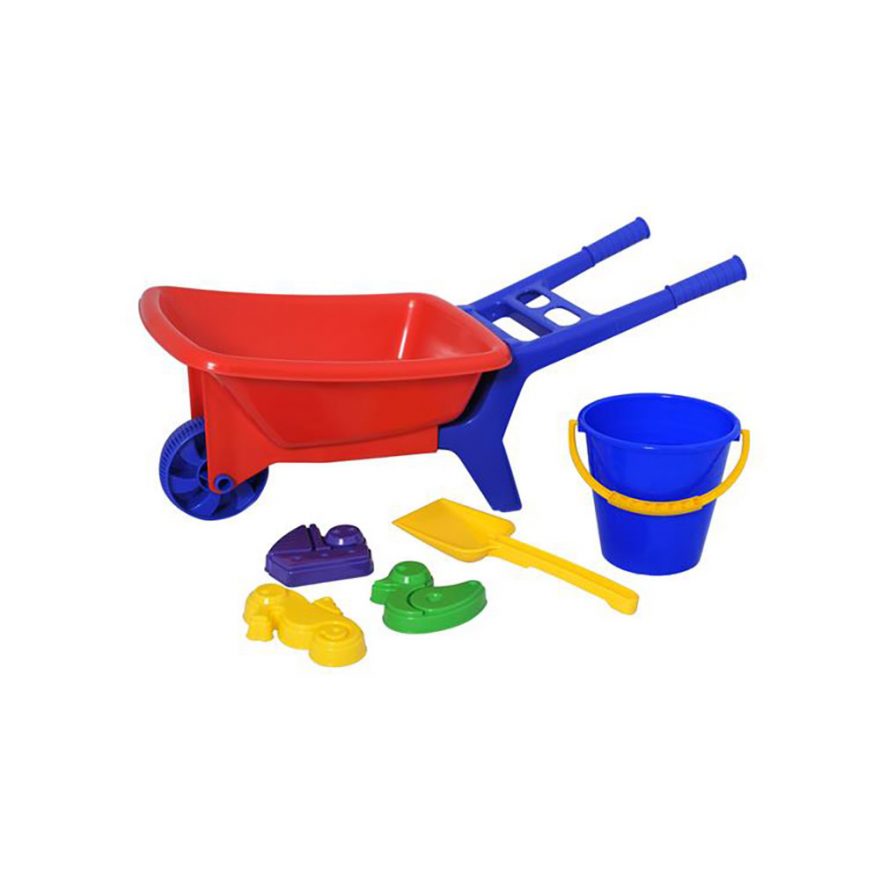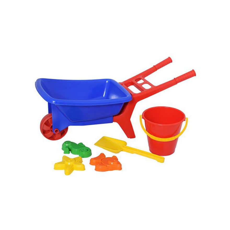 Trillebårsett med bøtte, spade og sandformer. Alt du trenger for en deilig dag ute.