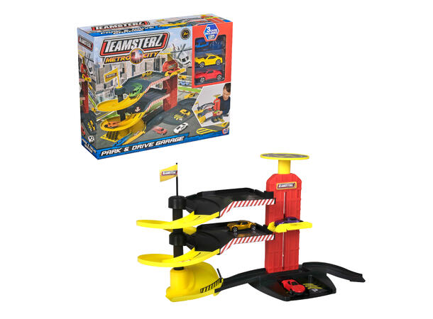 Liten, 3 nivå tårn-garasje som inkluderer tilkoblingsramper mellom nivåer, inspeksjonsrampe, helikopterplass, arbeidsheis og to parkeringplasser på hvert nivå.